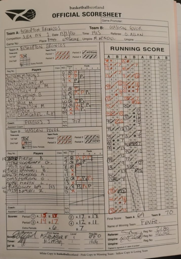 Bishopton Broncos 1 vs Glasgow Fever 1
