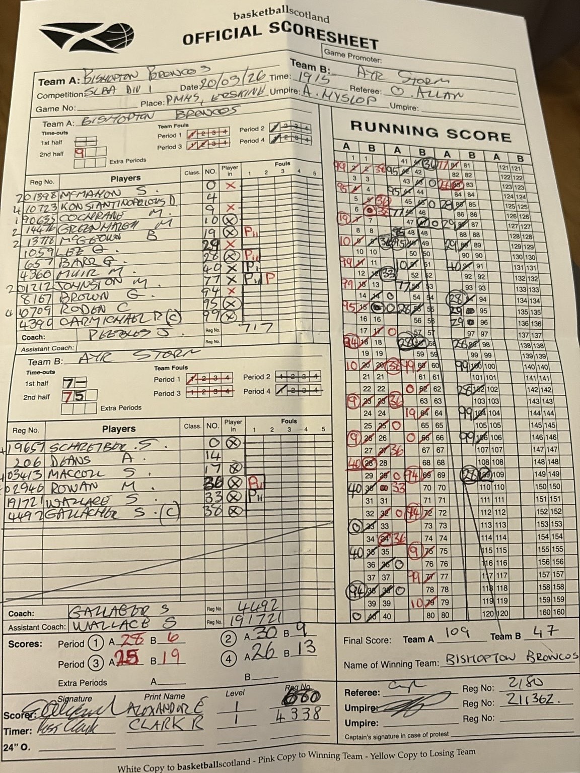 Bishopton Broncos 1 vs Ayr Storm 1