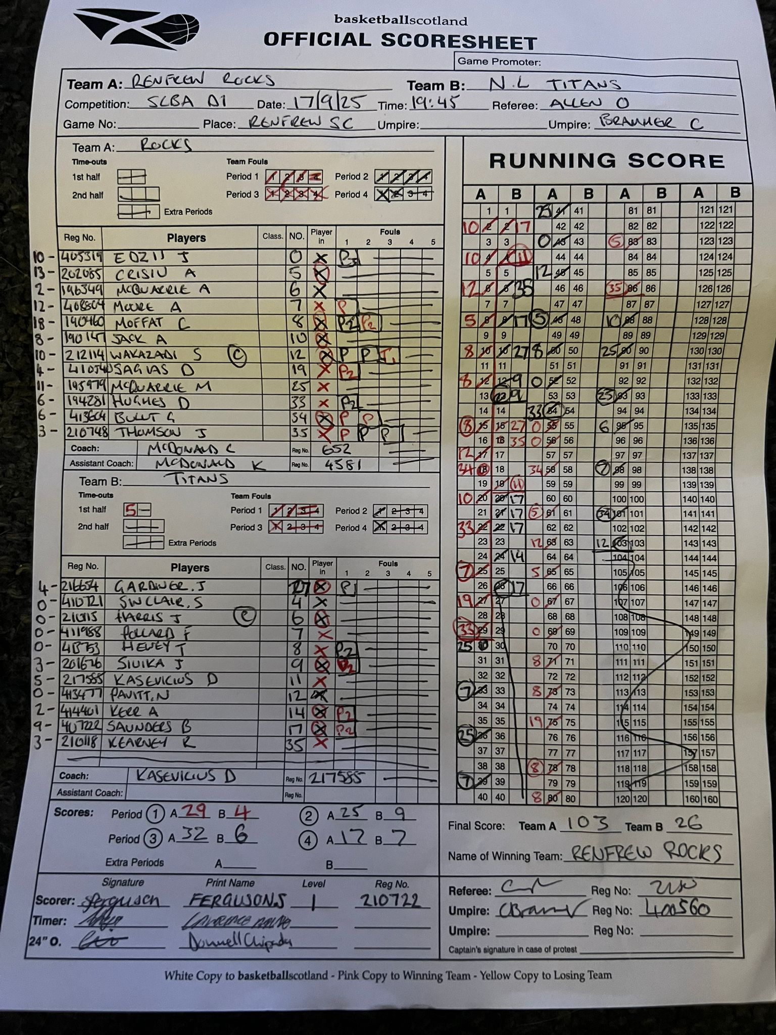 Renfrew Rocks 1 vs North Lanarkshire Titans 1